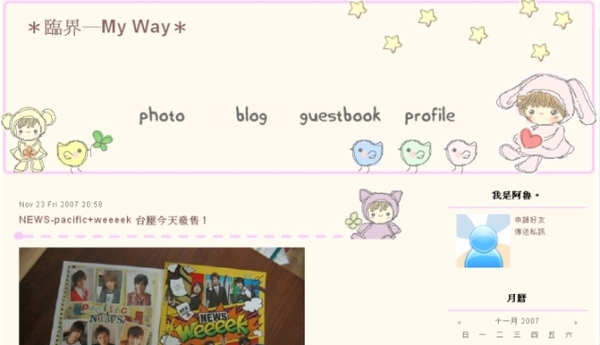 網誌裡寫了很多心情點滴,包括王建民第一次在大聯盟先發,我看完超感動只差沒飆淚的心得…沒了;
